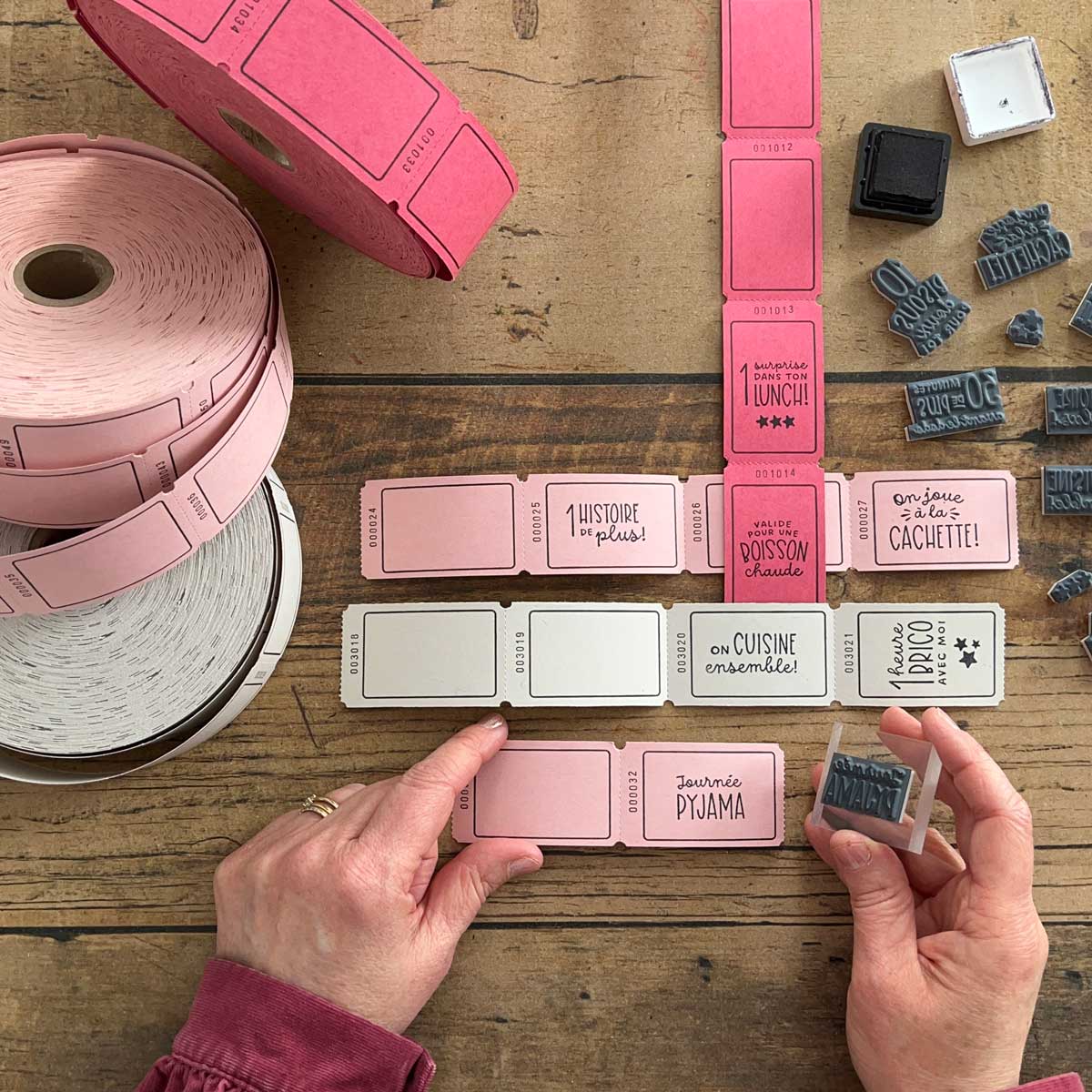 Notre collection d'étampes est offerte en différents formats : Plaque d'étampes à découper, ensemble d'étampes amovibles prédécoupées et tampons autoencreur.