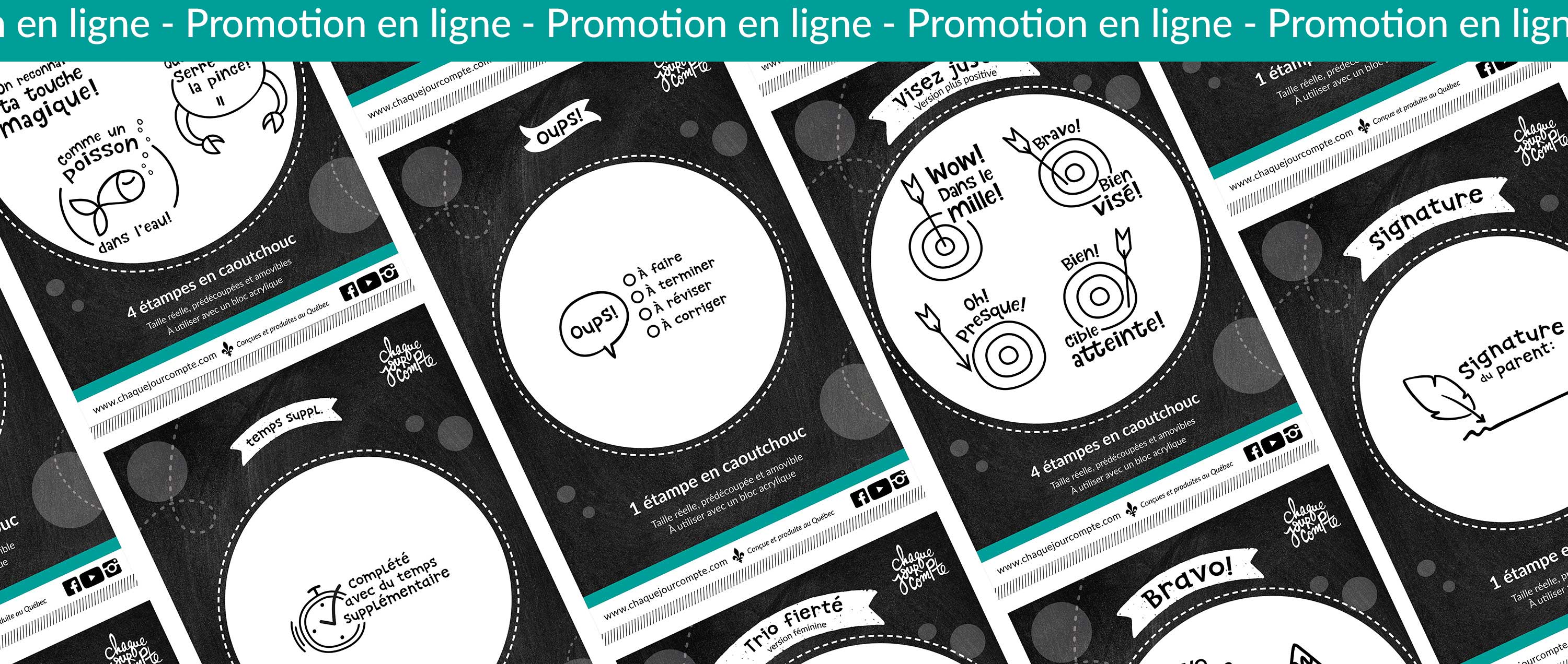 Depuis 10 ans, nos étampes transmettent des messages colorés, motivants et positifs aux élèves! Suivant les demandes et les suggestions reçues, nous proposons des étampes utiles et originales, créées et fabriquées ici au Québec!