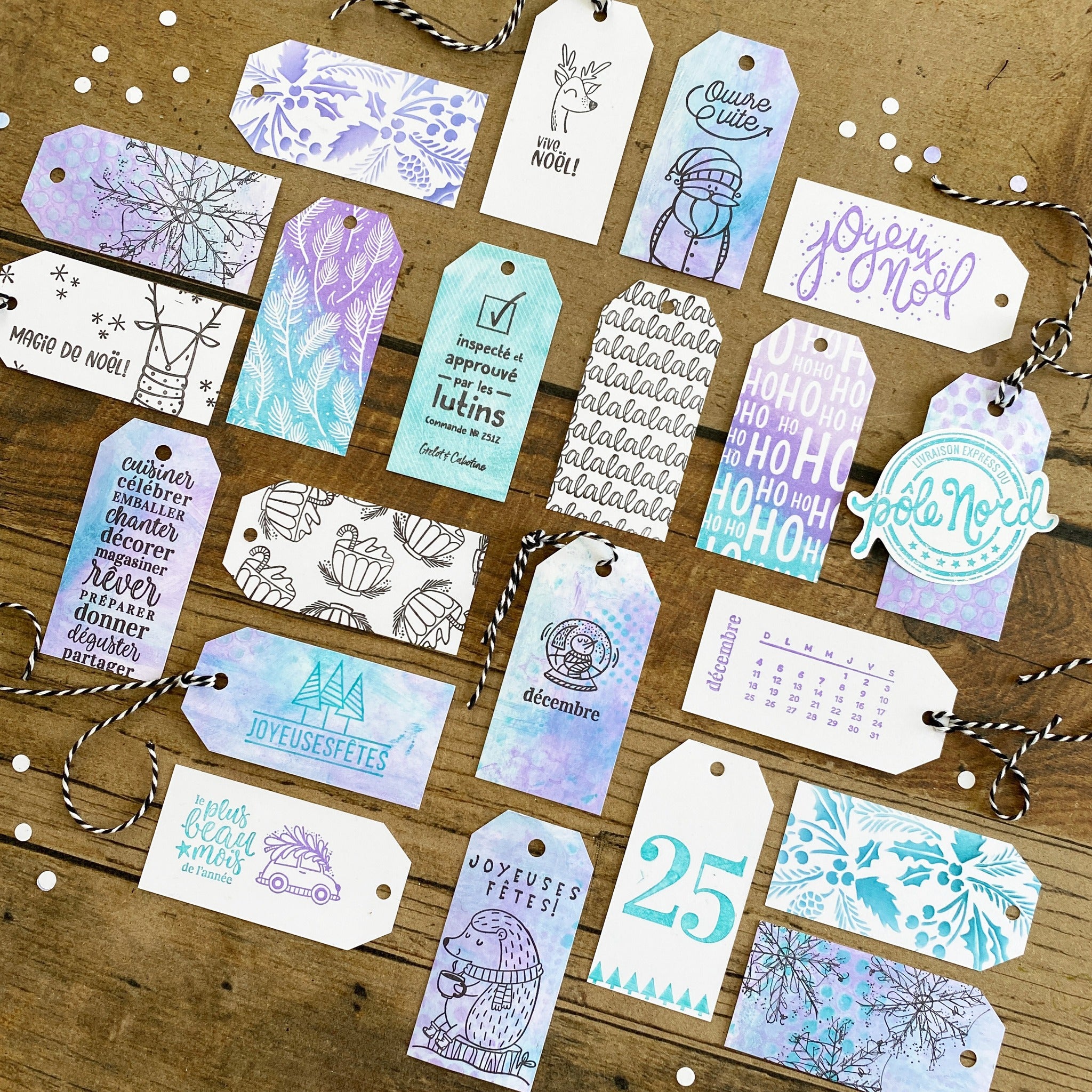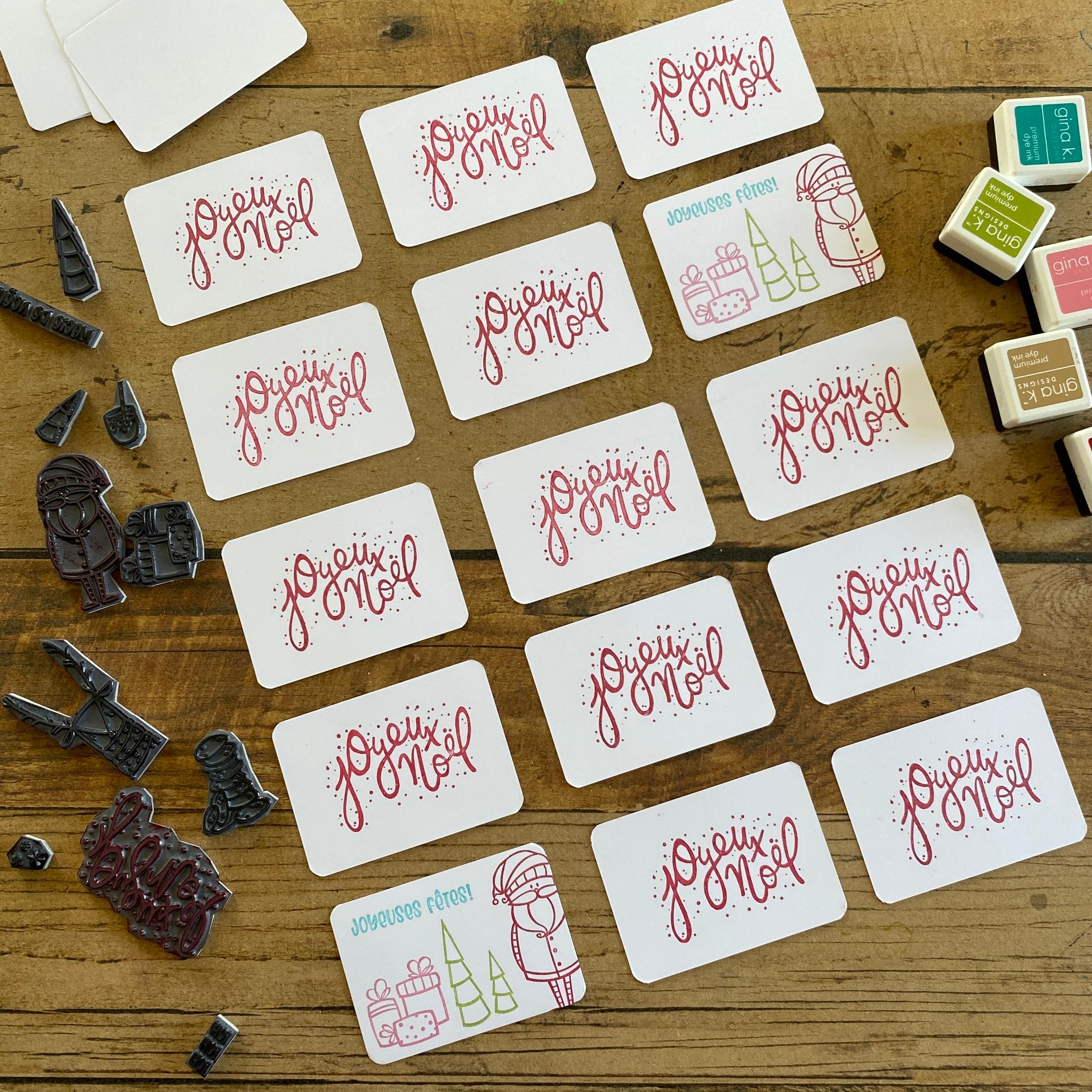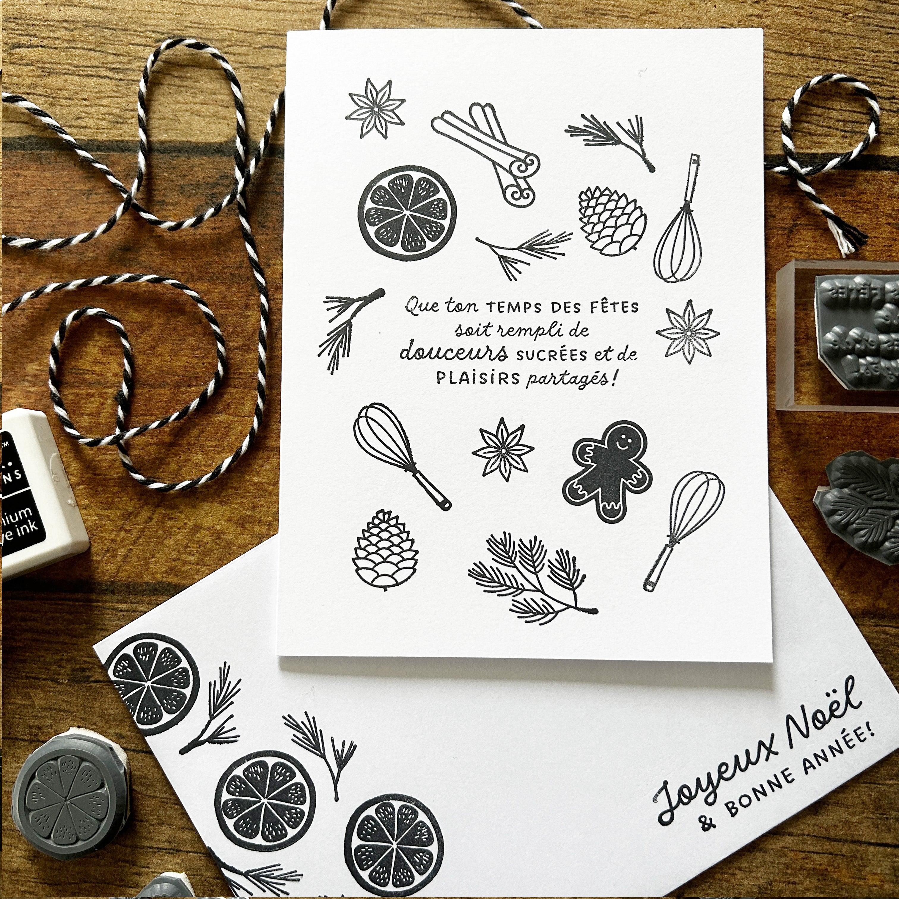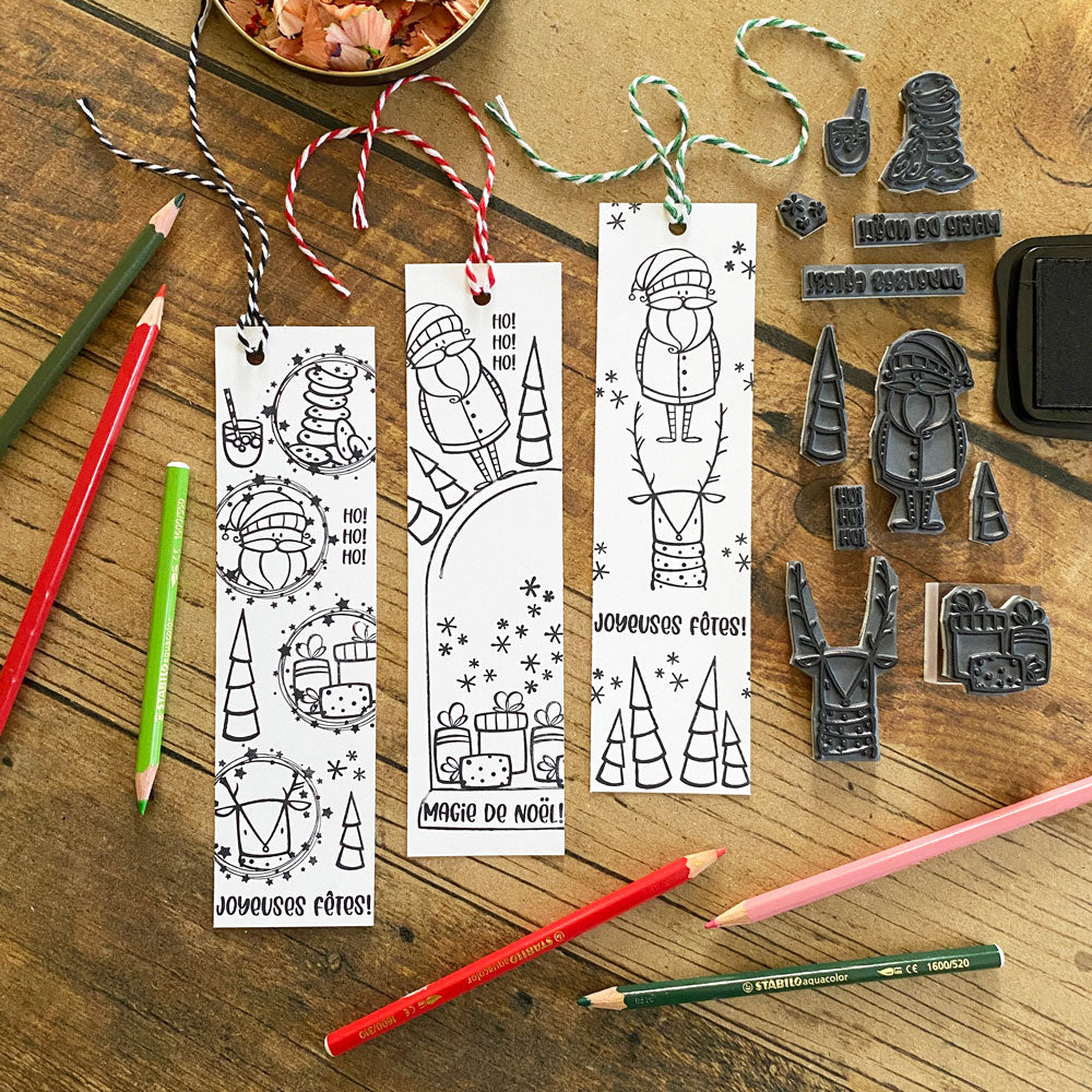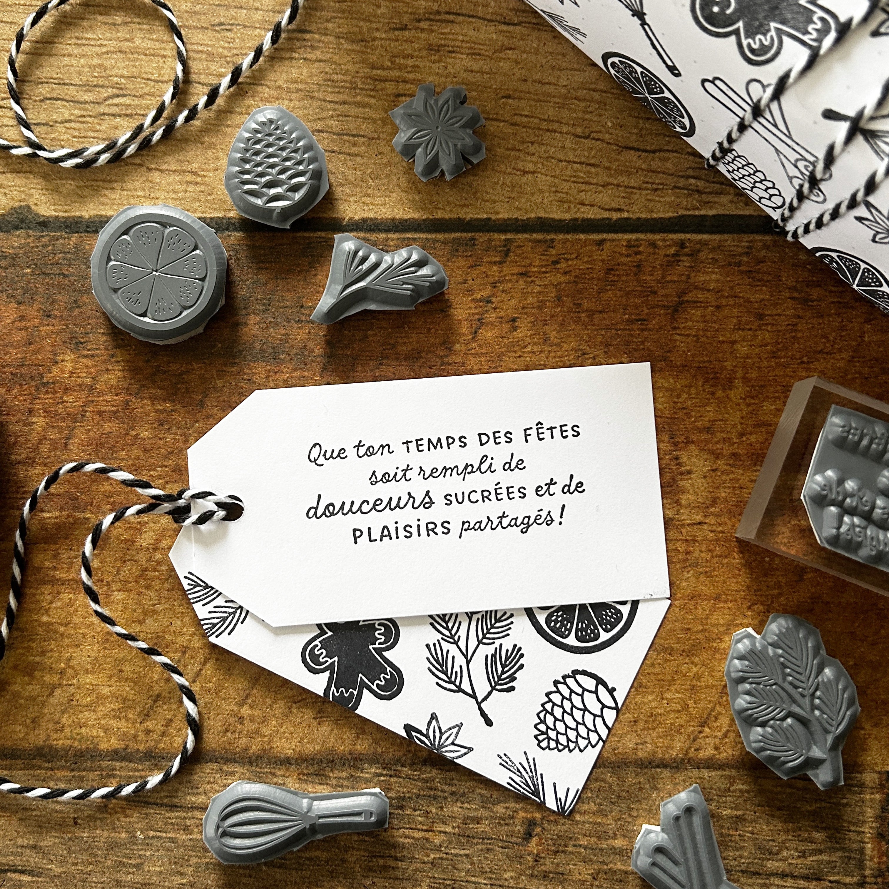 Notre collection d'étampes est offerte en différents formats : Plaque d'étampes à découper, ensemble d'étampes amovibles prédécoupées et tampons autoencreur.